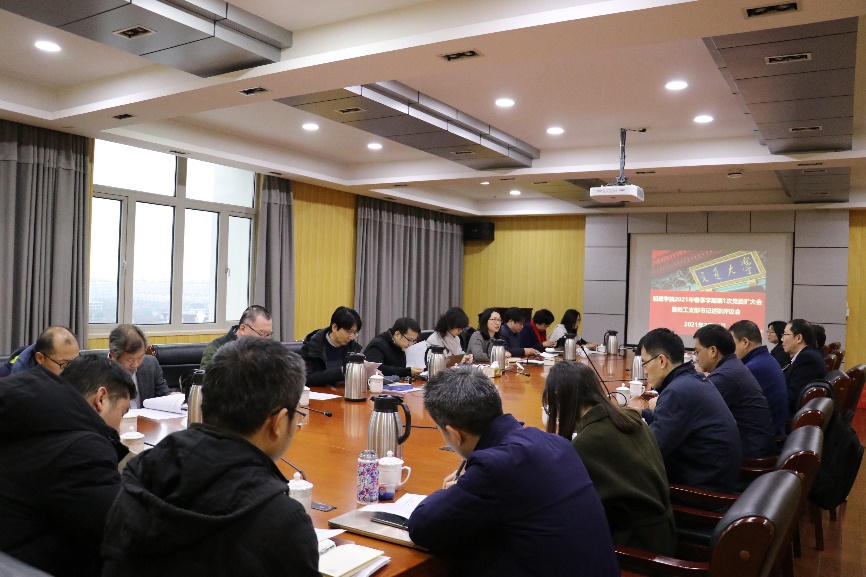 根据学校组织部关于开展2020年度二级单位党组织书记抓基层党建工作述职评议考核工作的通知精神,2月26日,欧美a片 2021年春季学期第1次党委扩大会暨教工支部书记述职评议会在木兰楼举行,学院全体党委委员、教工党支部书记参加会议。会议由党委副书记王喜芳主持。