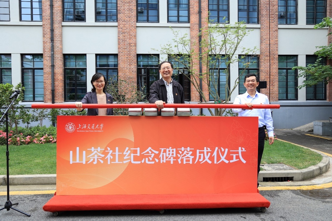 “山茶社”是交通大学在1946年成立的一个学生社团,该社团主要以学习民间歌舞的形式,团结广大学生,达到自我教育的目的。中国核潜艇之父黄旭华院士就是其中的一员。在这里,黄旭华学长成长为地下党培养的进步青年,参与、见证了上海许多重大的学生运动,也逐步完成了从一名进步学生到革命者的蜕变。1999年校庆日,山茶社员重聚母校,栽下山茶树,立下长留山茶情的“山茶社纪念碑”。2021年山茶社纪念碑在原址基础上进行了修复,特此举办了此次落成仪式,以激励更多的青年学子向老一辈学习,继续发扬山茶社的精神,不断探索,勇攀高峰!