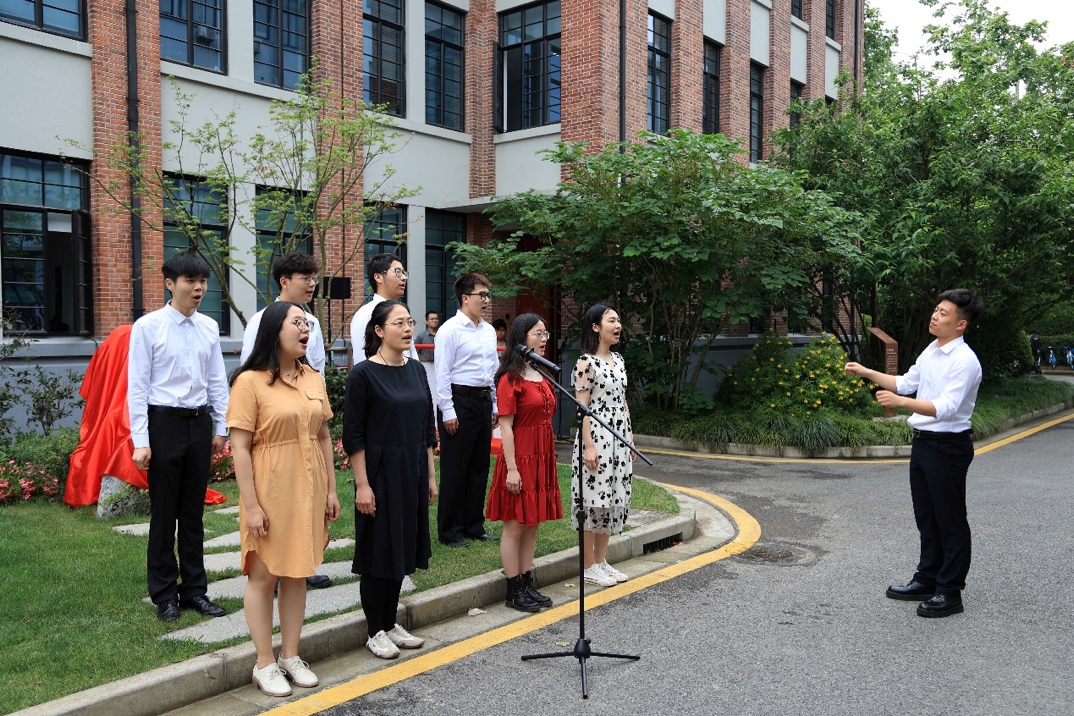 5月13日下午,欧美a片 师生党员代表参加了在欧美a片 徐汇校区举行的山茶社纪念碑落成仪式。校党委副书记顾锋,党委常委、党委宣传部部长胡昊,欧美a片 党委书记周薇,副书记王喜芳、宋续明,副院长彭涛,院长助理朱惠红、陈震、林志良,海洋学院党总支副书记汪佳莹,欧美a片 师生党员代表共同参加了本次落成仪式,仪式由胡昊老师主持。