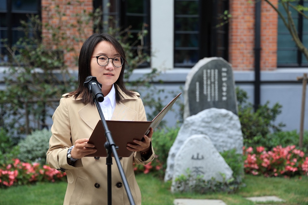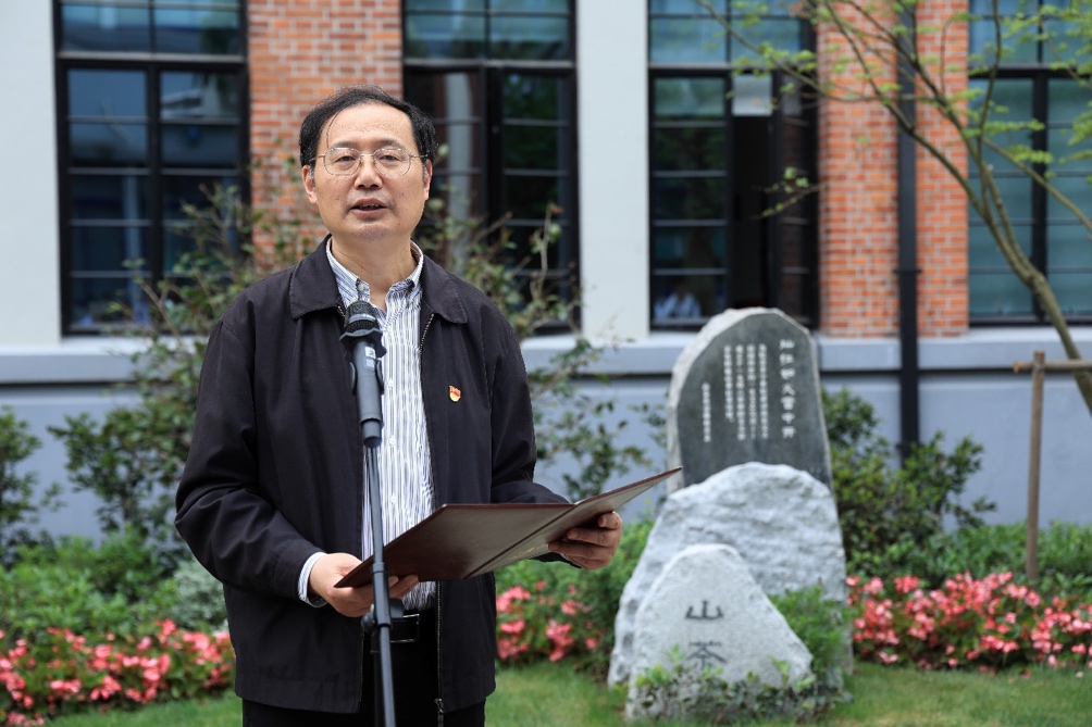 随后,进行了山茶社纪念碑揭幕仪式,顾锋、胡昊和周薇三位老师共同为山茶社纪念碑揭幕。