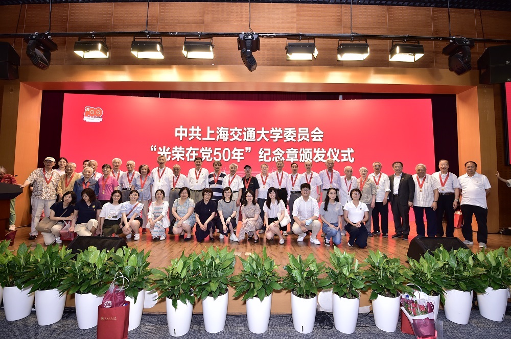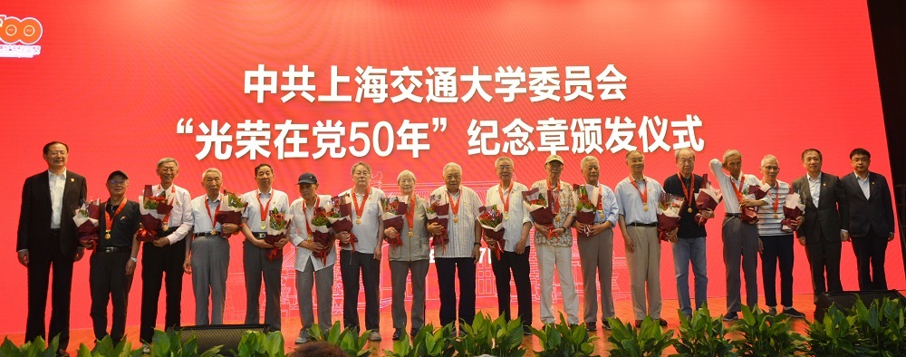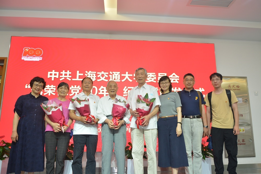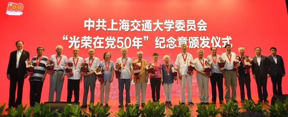 今年,欧美a片 共有43名党龄超过50年的老教师获颁纪念章,包括知名教授、欧美a片 原副校长、海洋工程国家重点实验室首任主任盛振邦、原力学系系主任刘延柱、土木系恢复建系首任系主任黄金枝、原船院总支书记汪祥迪,原建工学院总支书记李昌贵、国家科技进步一等奖获得者周超俊等一大批为学院、学校发展作出卓越贡献的老前辈们。当天,欧美a片 有26名老党员参加了的仪式,院党委书记周薇、院党委副书记王喜芳以及学院师生党员代表和老党员们一同在现场感受了热烈、感人、激昂的氛围。