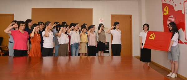 行政党支部组织党员重温入党誓词,致敬建党百年,接续奋斗再出发。全体党员胸佩党徽,在党员之家整齐集结。支部党员在党委书记周薇的领誓下,右拳高擎,神情庄重,面对鲜红的党旗郑重宣誓,重温入党誓词,再一次坚定加入中国共产党的铮铮誓言。