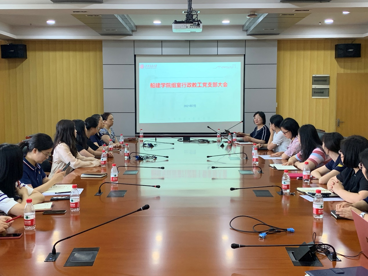 2021年7月7日下午,欧美a片 教工行政党支部在木兰楼A1002会议室召开党员大会,针对近期党务工作重点与党员发展情况进行通报,会议由党支部书记袁敏主持。