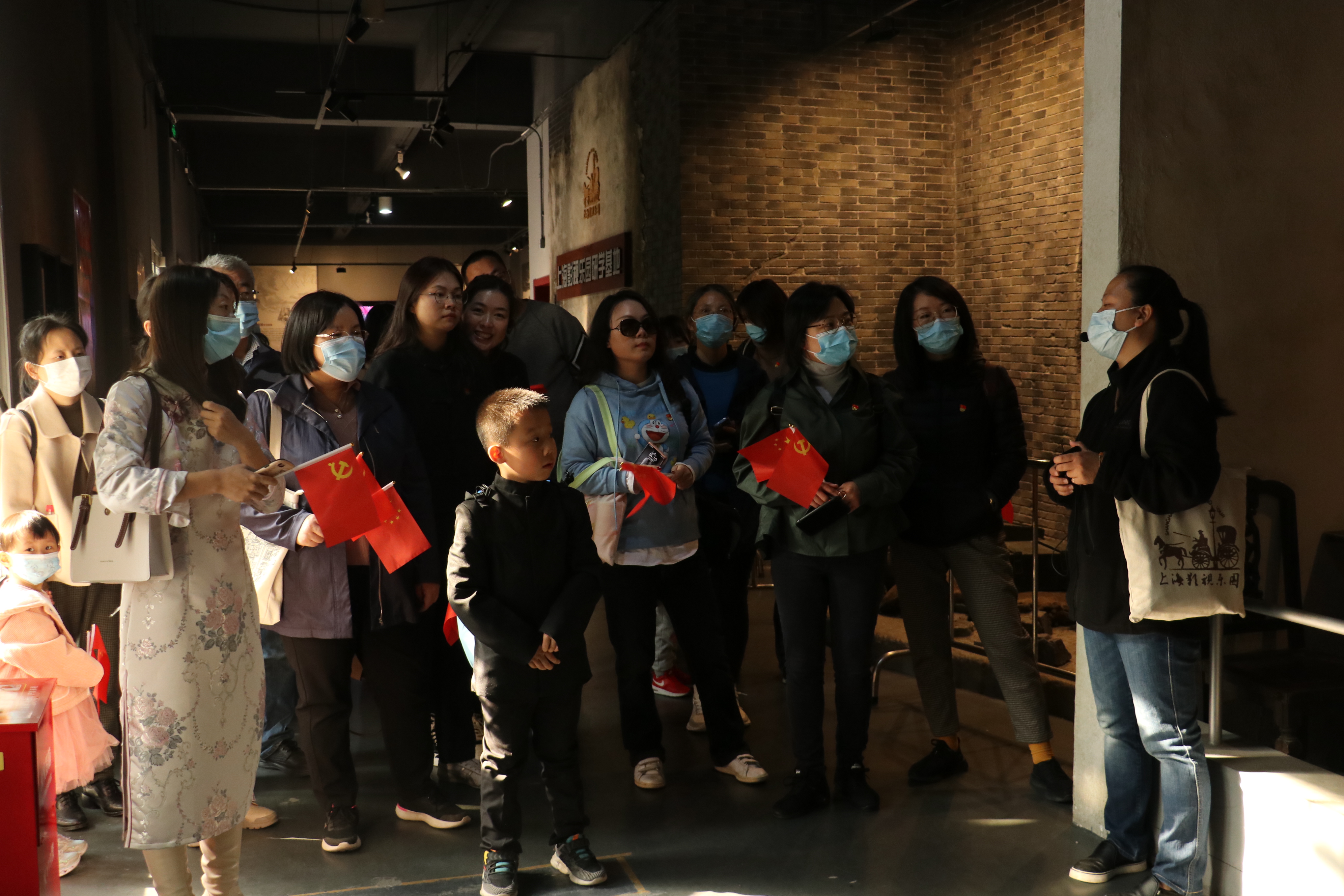 支部全体党员搭乘“初心号”穿行在“老上海”,它是上影集团目前保存最为完好的一辆道具车,曾在革命历史题材重点影片《开天辟地》(1991)中闪亮登场,车厢顶部还有一面鲜红的党旗,也因此具备了独特的红色基因。第一站,大家来到了上海影视乐园的研学基地,听导游讲述了李白烈士的英勇事迹,他是电影《永不消逝的电波》中“李侠”的人物原型。接着,在电影《1921》的取景地,置身按照1∶1复刻的中共一大会址望志路106号,坐在会议桌前,耳畔响起的是代表们关于中国共产党成立的激昂讨论;听到巡捕房的声音,大家纷纷加紧了脚步,从后门离开,前往嘉兴“红船”,在摇晃的“红船”上重温共产党艰苦的奋斗历程。走到南京路上,党员们现场聆听了革命代表的高台演讲,并客串了一次群众演员加入游行队伍,亲口喊出了“劳工万岁”“上海是中国人的上海”等振奋人心的口号,历史仿佛再生为鲜活的亲历。此外,大家还参观了四行仓库、和平广场等建筑,并在上海大戏院欣赏了根据《开天辟地》《铁道游击队》《红色娘子军》《渡江侦察记》《建国大业》等六部红色电影剪辑而成的短片《红色光影录》,重温1921-1949年的革命记忆,了解共产党人不变的奋斗与信仰。