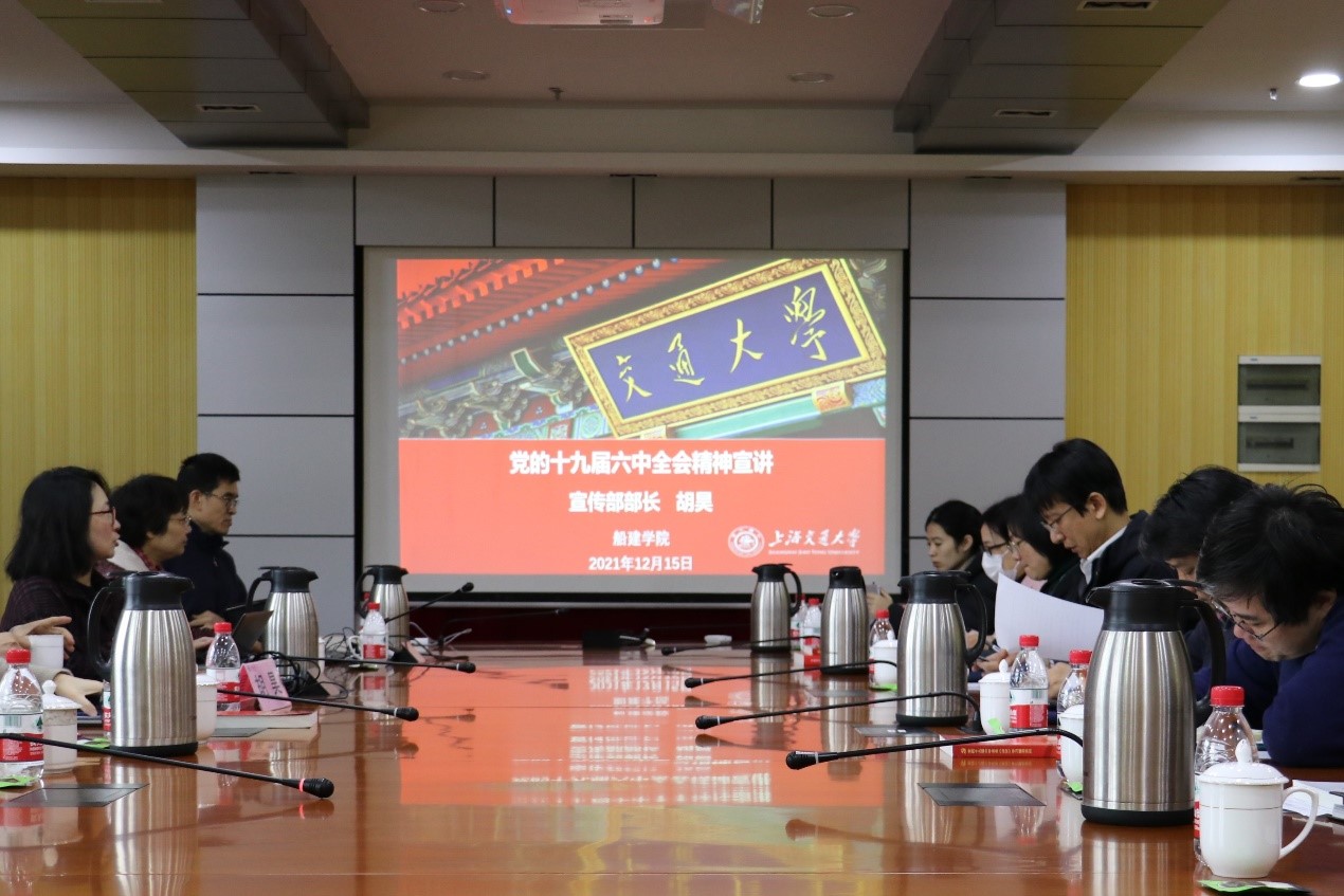 胡昊作十九届六中全会精神专题宣讲。胡昊阐述了十九届六中全会公报发布的十八大以来十三方面的成就,并对于第七方面成就——“文化成就”做详细展开介绍。他谈到,学校始终积极创建文明校园,打造思政育人大熔炉,强化三全育人;以文化传播,引领校园博文通达,结合艺术深耕理想信念教育,通过网络平台助力校园文化传扬;以文博育人,彰显传统文化之美,开展敦煌文化守望者志愿者计划等,持续加强宣传思想阵地建设。胡昊还深入分享了对于交大形象、精神谱系、校园文化现状、文化建设战略举措的学理性分析,交流了十四五规划大学文化建设着力点。他希望,以文化建设引领学院发展,将校史舞台剧《积厚流光》中的船建元素,黄旭华院士的山茶社纪念碑故事,欧美a片 首位共产党员烈士、土木系校友侯绍裘事迹等,进行深入学习和广泛传播,厚植船建人的家国情怀。
