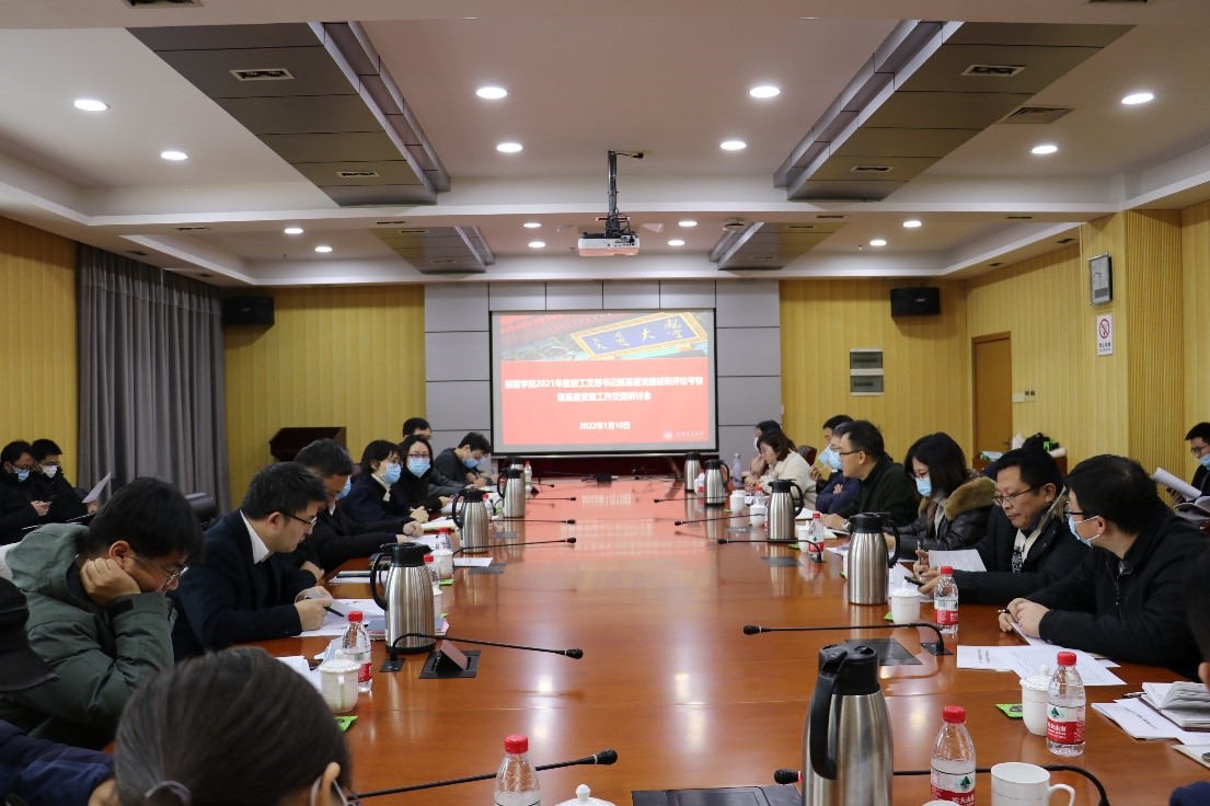 会前,15个教工党支部向学院党委报送了各支部年度党建工作总结。会上学院党委将2021年度各支部 “三会一课”开展情况、理论学习及学习强国平台使用情况、党费缴纳及使用情况、主题党日、党员发展、典型宣传及创先争优情况等进行通报。随后,各支部书记结合工作实际,围绕在基层党建工作中的经验做法、面临的问题、存在的困惑进行交流发言,与会党委委员结合工作分工和联系党支部情况进行点评交流。