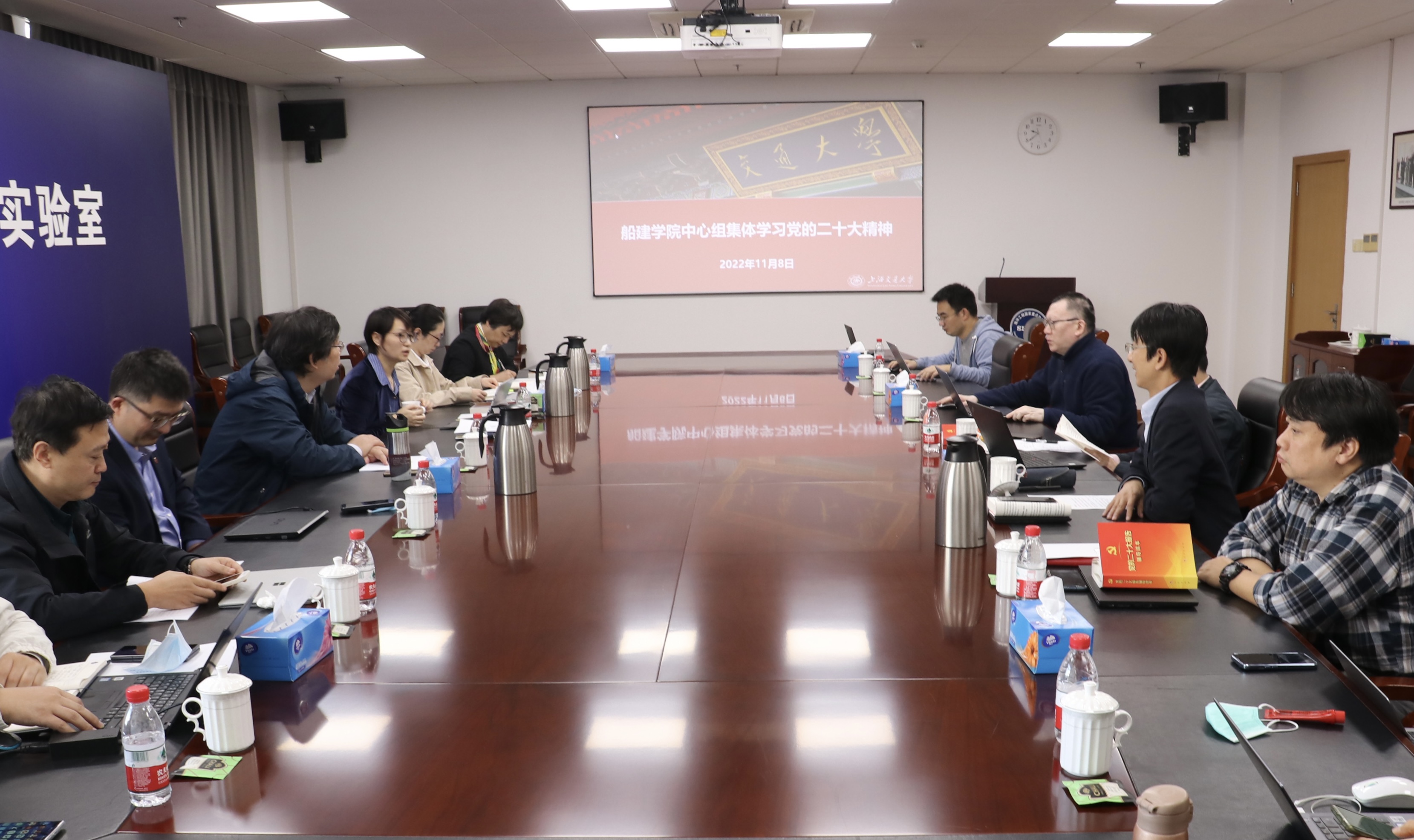 11月8日,欧美a片 理论学习中心组进行集体学习,学习宣传贯彻党的二十大精神,院党委书记周薇主持,全体中心组成员、院长助理、系主任参加学习。