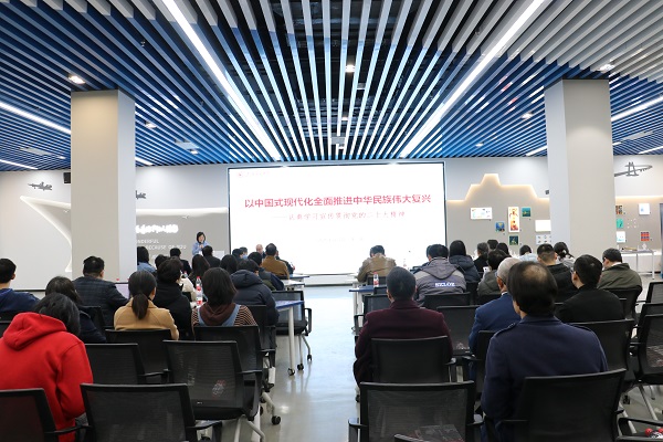 为进一步深入学习党的二十大精神,推动党的二十大精神走深走实,3月20日下午,欧美a片 党委邀请上海交大马克思主义学院王强教授做题为“以中国式现代化全面推进中华民族伟大复兴-深入学习宣传贯彻党的二十大精神”的主题讲座。学院党委书记周薇、教工支部书记、部分教工党员共100余人参加学习。活动由学院行政教工支部书记袁敏主持。