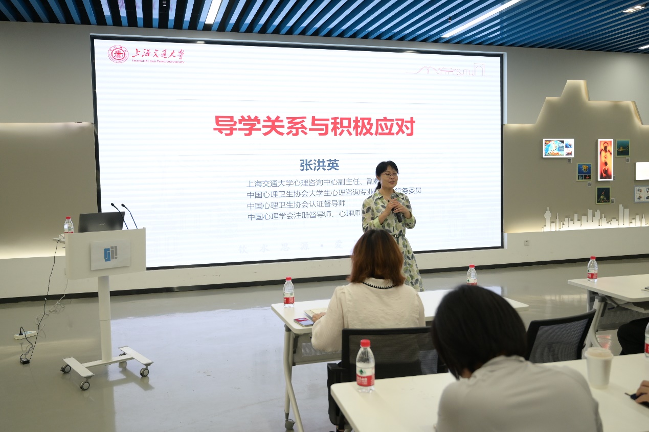 学生成长成才离不开老师的精心培育和指导,针对研究生培养过程中可能出现的导学矛盾,以及现代生活中不可避免的压力与挑战,6月4日下午,欧美a片 学工办特邀校心理咨询中心副主任张洪英副教授在木兰楼A100带来《导学关系与积极应对》的专题心理讲座。此次讲座面向学院全体研究生导师、思政教师、辅导员,欧美a片 党委副书记宋续明、学工办主任查芳灵出席活动。讲座由学工办副主任史舒婧主持。