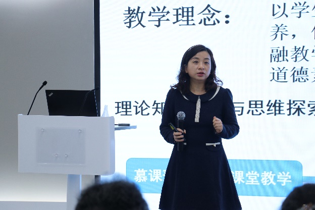 试讲后嘉宾评委从教学安排、课程体系、板书设计、课程效果、语言仪态等方面分别对5名参赛教师进行问答点评,提出改进建议,交流经验心得。经评选,胡文蓉获本次教学竞赛一等奖,陈思佳、宫兆新获二等奖,张毅、吴勇军获三等奖。