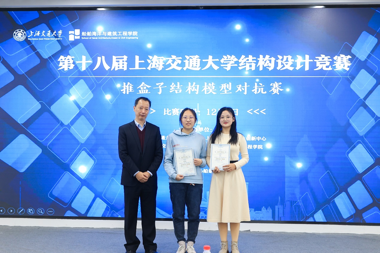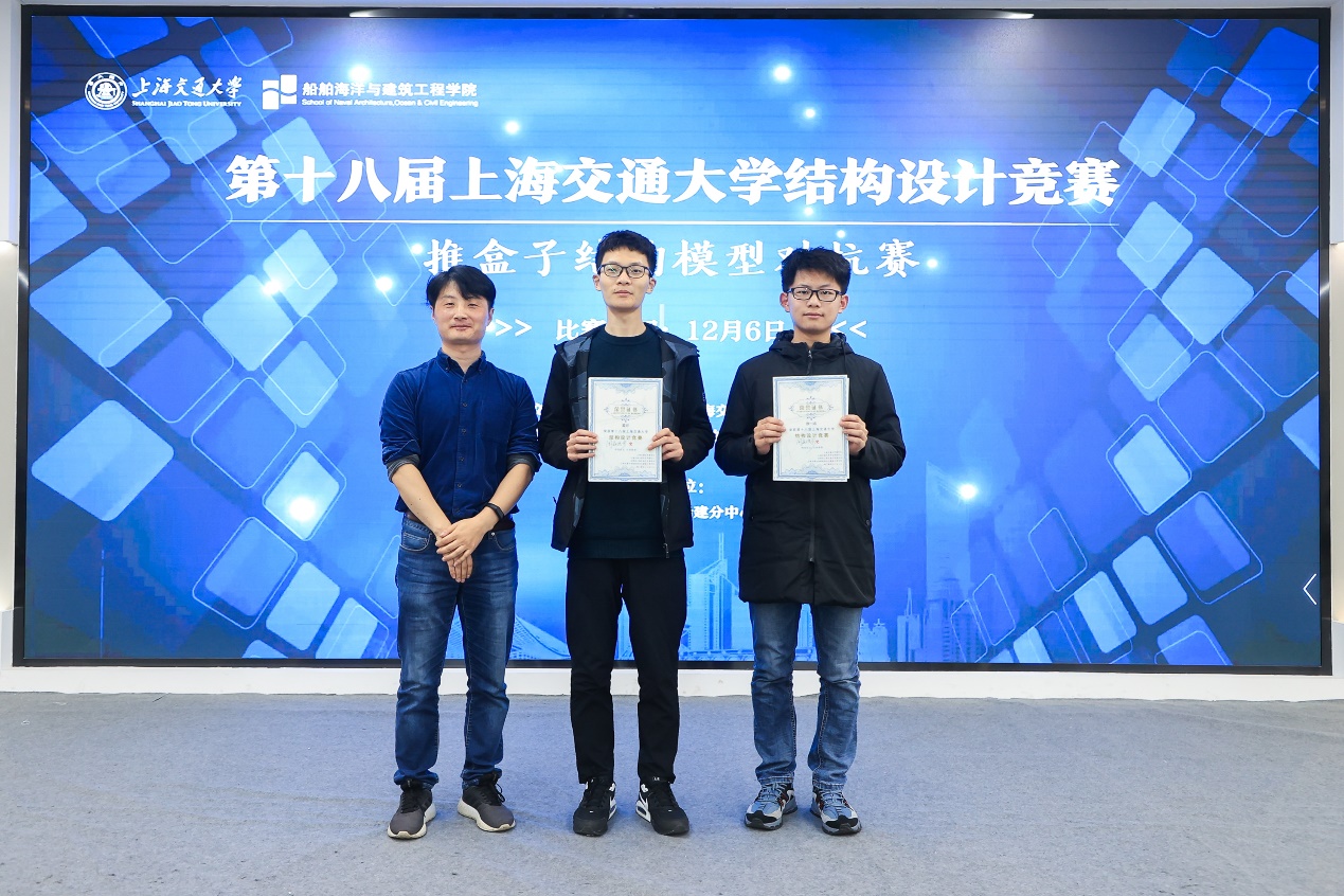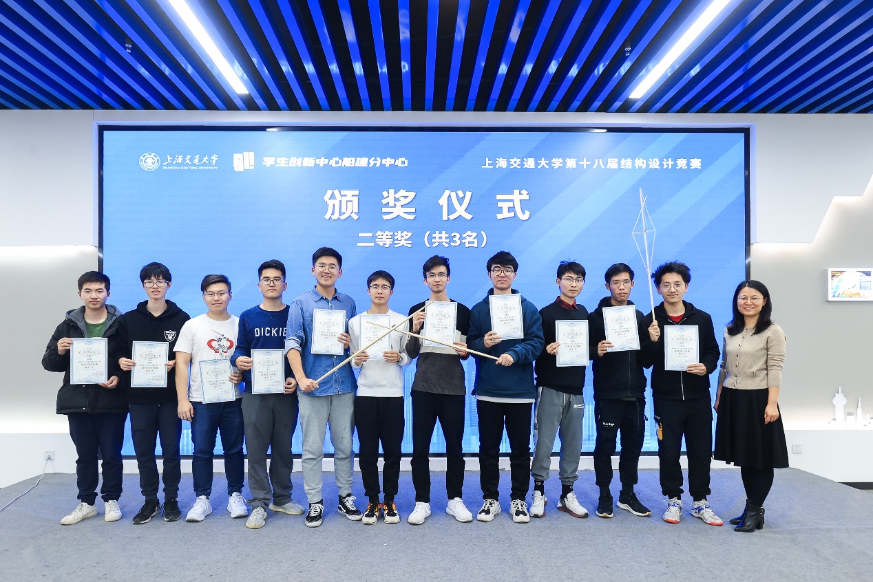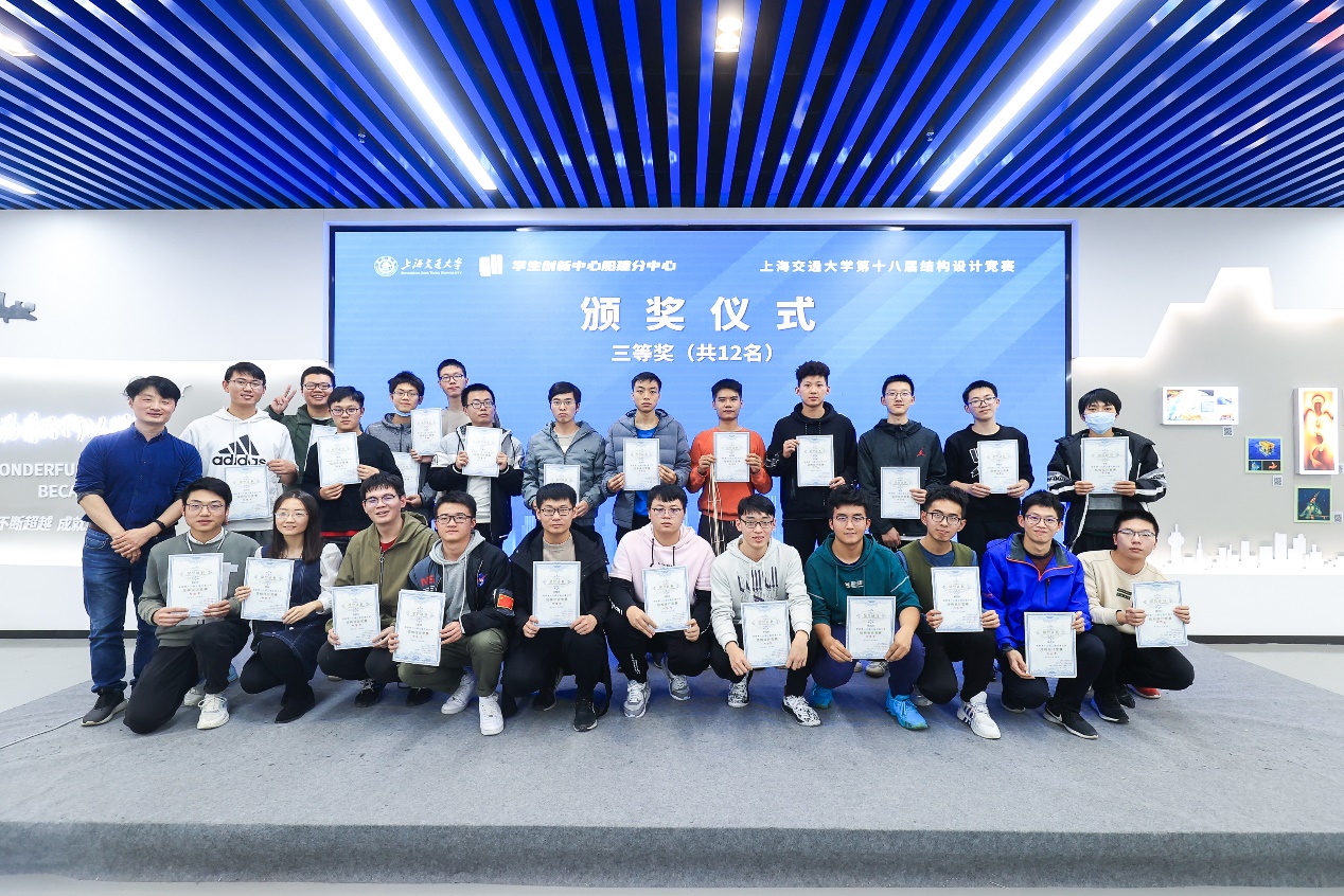 最终,经过四个多小时的对抗加载,陶青筱、郑心浩、姜睿、邬心远组成的“总之就是非常菜狗”队获得了比赛一等奖,赵浩南、骆雪灵、杨洋、吴文成组成的“海克斯科技原型腰带”队、余达龙、钟睿哲、吕威贤、叶航宇组成的“工力作业总算不队”与张睿、严帅、李伟志、田昌权组成的“权员帅哥”队获得了二等奖,十二支参赛队伍获得了三等奖。赵浩南、骆雪灵、杨洋、吴文成组成的“海克斯科技原型腰带”队获得最佳制作奖,蔡遥、曹璇、陆启华、李昕宇组成的“推盒带师”获得最佳设计奖。宋晓冰、邱国志与陈思佳依次为各位获奖同学颁发了奖状。