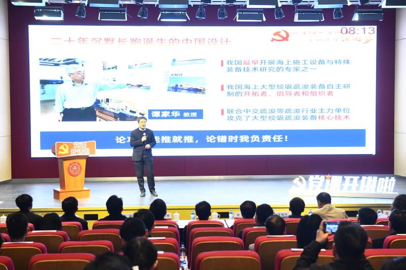 远海岛礁建设是建设海洋强国、维护国家安全的重要任务。这个工程的开路先锋是一艘叫做“天鲸”号的挖泥船,而她的背后凝聚着上海交大欧美a片 谭家华教授以及他带领的团队的智慧和汗水。设计研究所党支部书记陈新权在微党课中,为大家生动讲述了二十年来他们团队秉承着“核心技术是抄不到、买不来的”理念,攻坚克难,求真务实,攻破挖掘系统、定位系统、传输系统等多项卡脖子技术,打破发达国家的技术垄断,让我国的大型绞吸挖泥船的设计和制造“从跟跑到开始领跑世界”的故事。他的微党课让台下观众们深切认识到了做科研,就要努力服务国家战略,敢于创新,取得核心技术突破,只有这样,才能为实现中华民族伟大复兴的中国梦作出贡献!