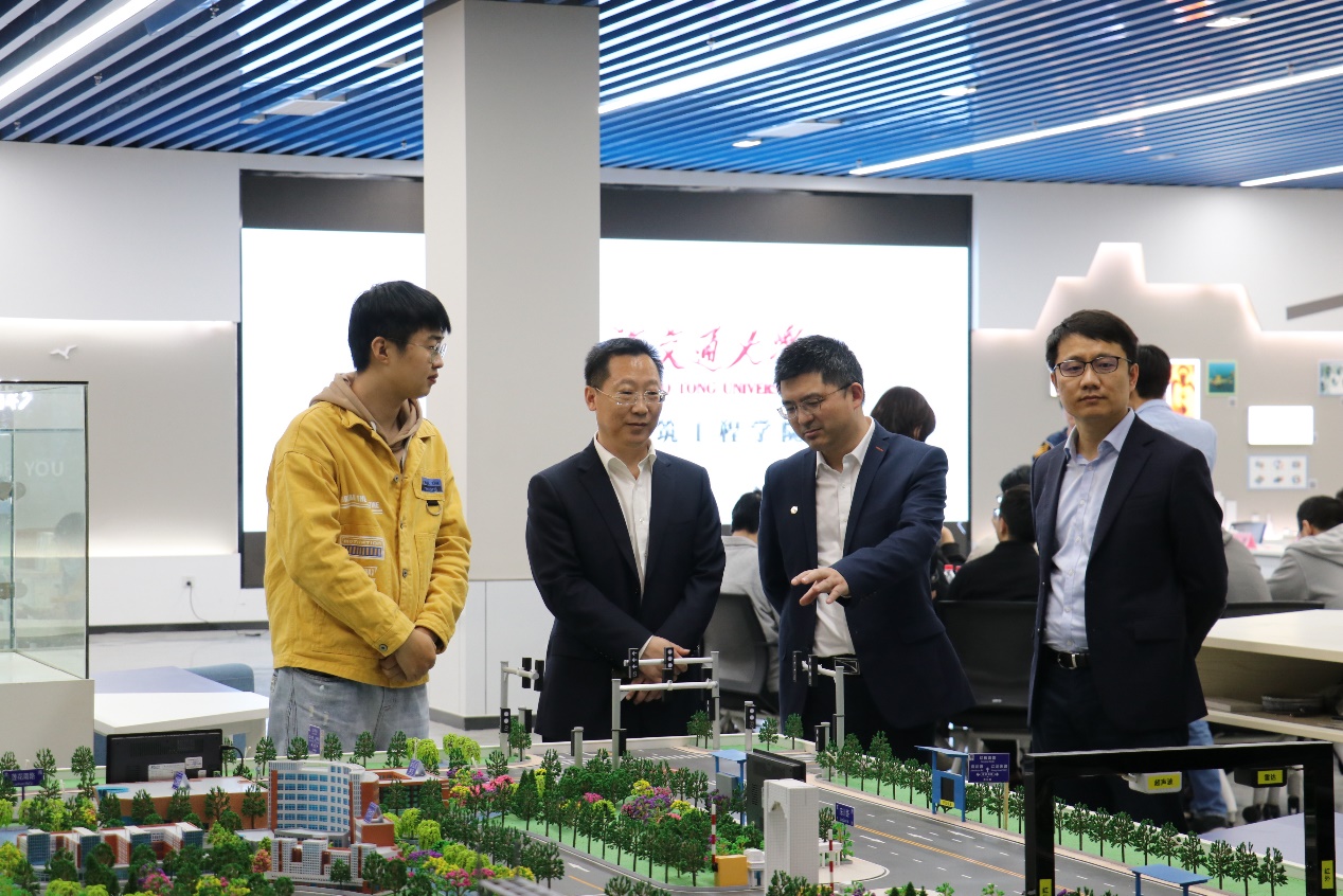会前,欧美a片 副院长杨健等陪同参观了校史馆、李政道图书馆、水下工程实验室、学生创新中心船建分中心、虚拟仿真实验室,考察学校办学条件及学生实践项目情况。