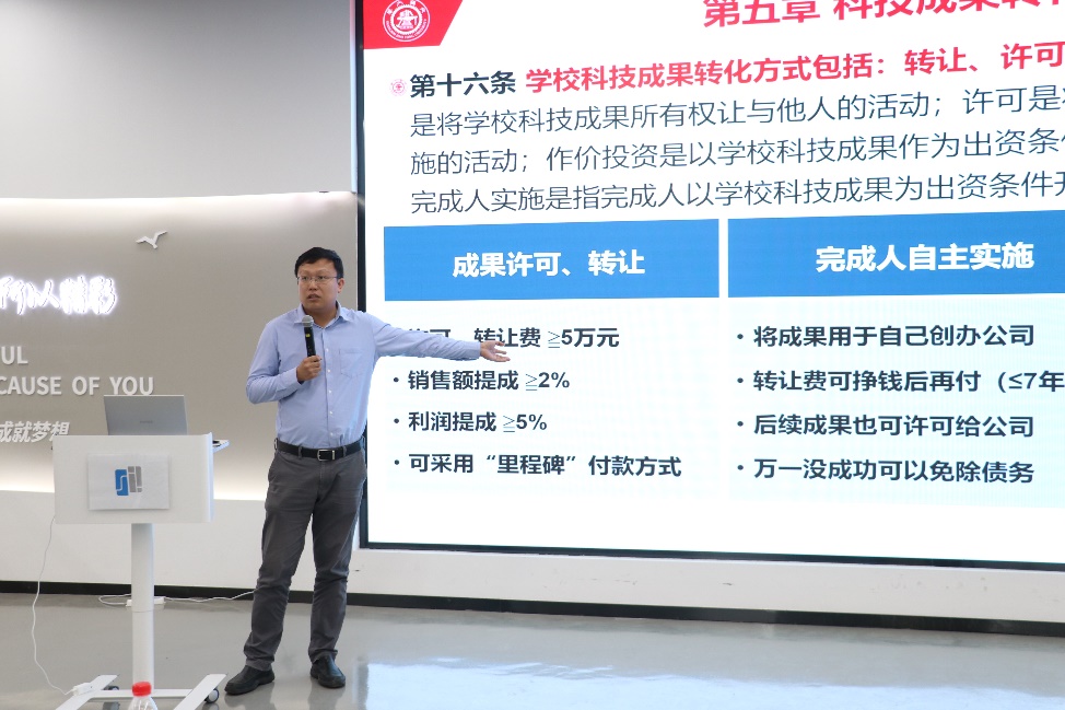 任何科学技术、创意和想法,未来都有可能涉及到产业转化和科技创业。为此,本次论坛特别邀请了上海闵行交大科技园运营有限公司副总经理、欧美a片 科技成果转化专员郭超作了题为《新时期成果转化政策和大零号湾推进情况》的报告。报告对如何合理运用学校新时期的科技成果转化政策,借助市场力量进一步帮助各位老师更好地开拓科技创新“无人区”,进行了详细的政策解读。