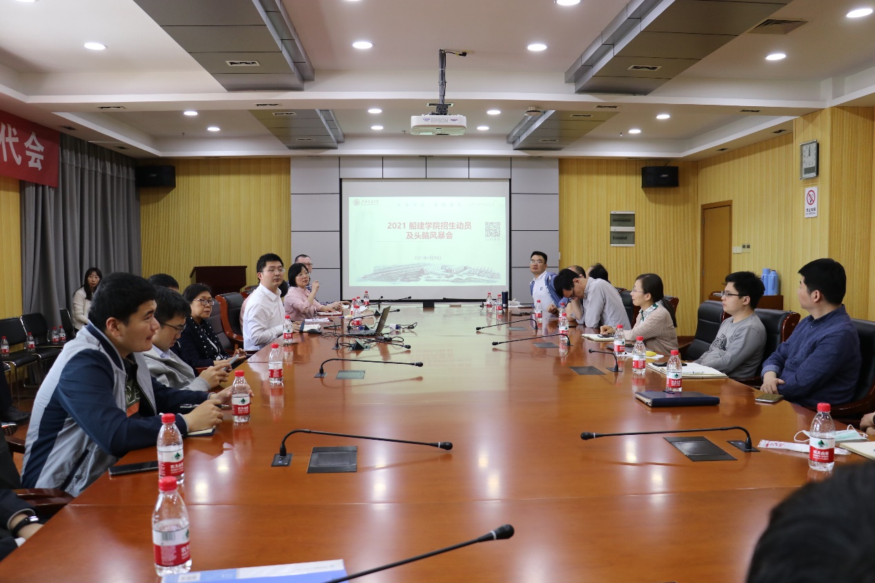 4月29日中午,欧美a片 在木兰楼1002会议室召开2021年招生培养联动座谈会议,学院党委书记周薇,分管本科教学副院长杨健,副院长兼船海系主任薛鸿祥及各系主任,江苏、河北招生组成员,四十余名青年教师及本科生教务办全体成员参加会议。杨健主持会议。