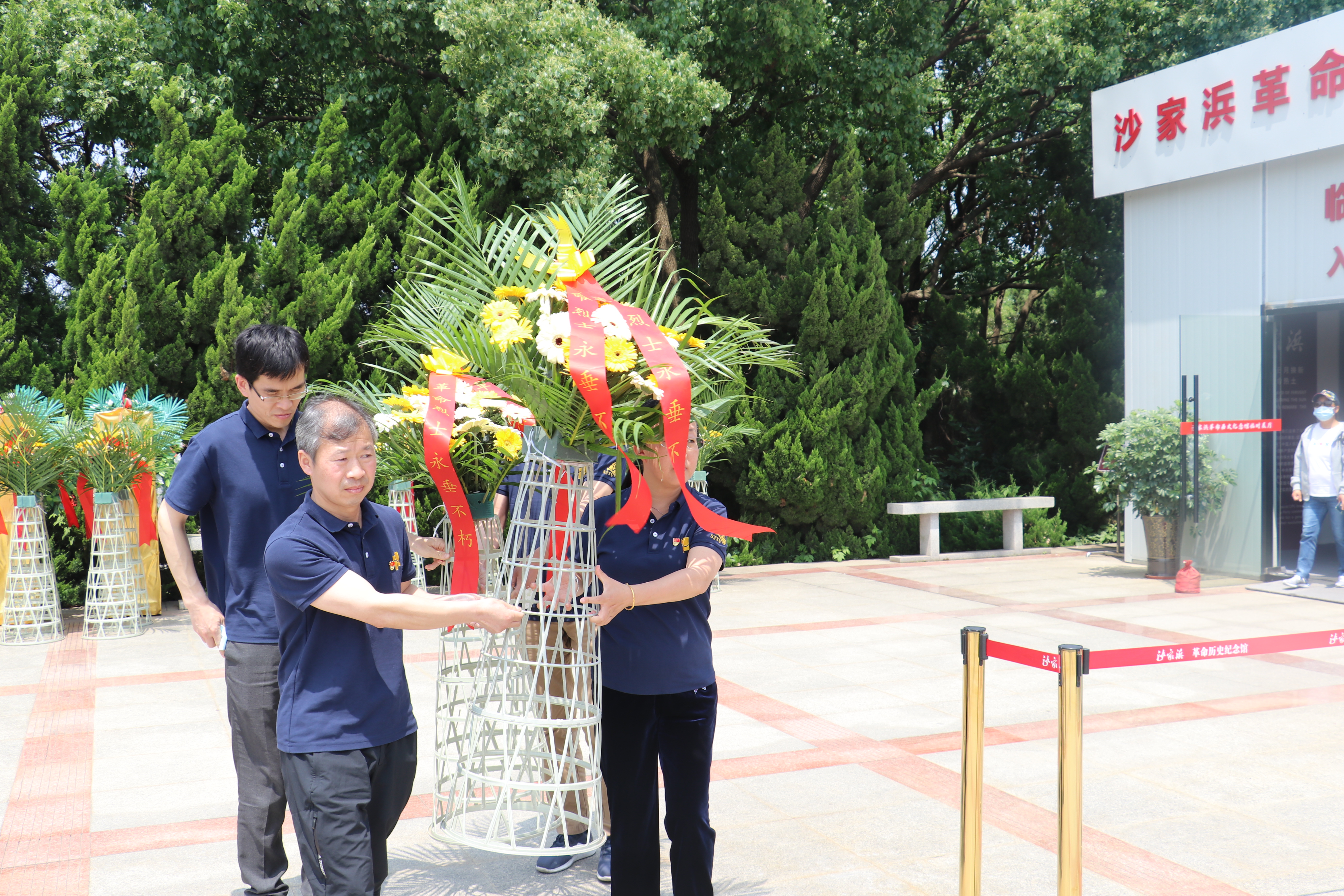 怀着无比崇敬的心情,大家在沙家浜革命历史纪念馆广场向革命先烈敬献花篮,面对党旗重温入党誓词。