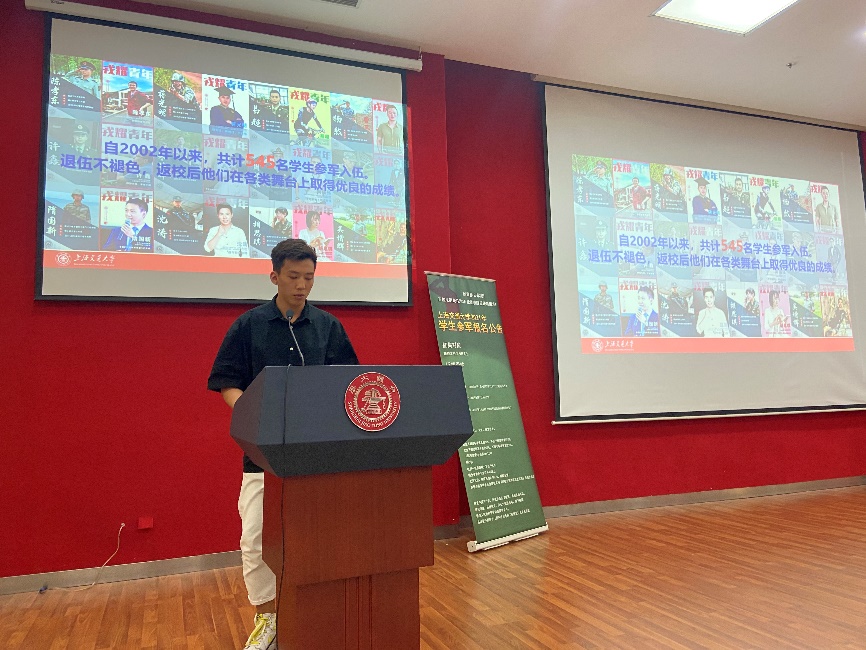 参军退伍学生代表朱甬麒、殷豪、黄庆喜分别和同学们分享了自己的参军感悟。他们从自己的实际情况出发,讲述了自己参军入伍的初衷,在军营中的体验与收获,以及自己目前的学习生活状态,为想要参军入伍的同学提供了建议和参考。