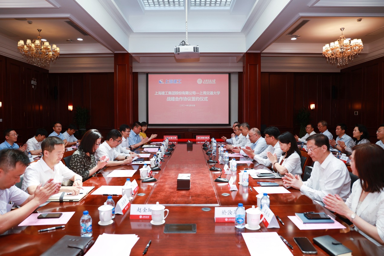 在随后的研讨交流中,徐征董事长对此次与上海交大战略合作仪式签约表示了肯定,希望未来可以有更多的机会参与到上海交大的项目建设之中。上海建工将积极参与到与上海交大合作中,实现集团在建筑业领域的绿色化和智能化,助力上海建工集团向数字化建筑企业转型。上海建工也希望凭借着一流企业技术和管理水平,与上海交大高效合作,携手并进。