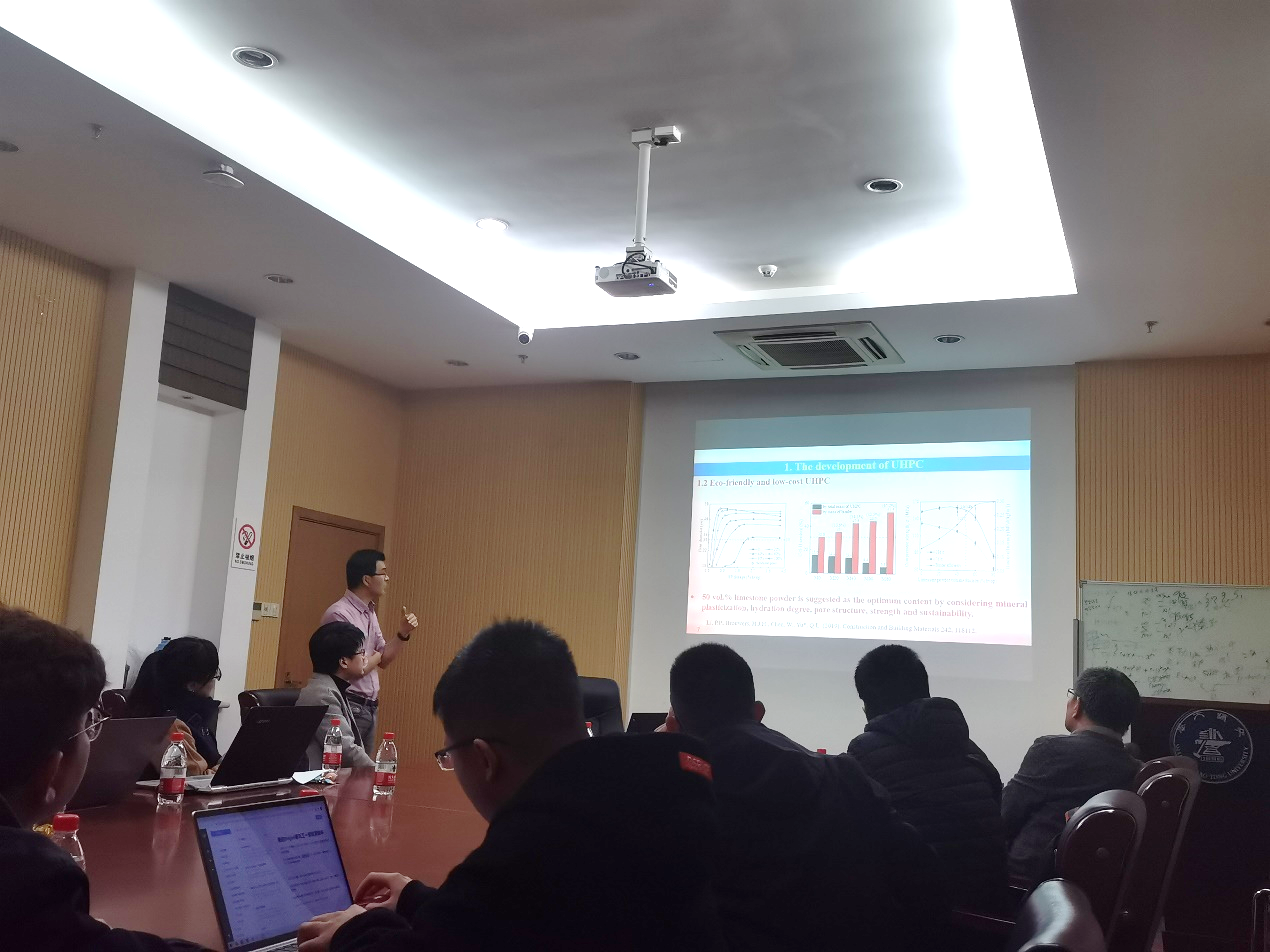 11月11日下午,武汉大学土木建筑工程学院教授于清亮应我院教师刘清风邀请访问欧美a片 土木工程系,并在木兰楼A211会议室做了题为“可持续冲击超高性能混凝土研究进展”的专题讲座。欧美a片 副院长杨健,土木工程系教师刘宜平、陈兵、何军、胡黎俐等30余名从事混凝土结构材料研究的师生代表出席了报告会。