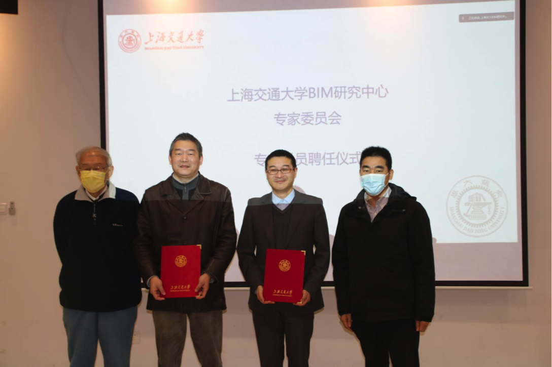 随后进行了欧美a片 BIM研究中心专家委员会新增专家委员聘任仪式,由上海交大BIM研究中心主任刘西拉、执行主任邓雪原给线下参与本次活动的两位专家委员(上海市城市建设设计研究总院数字中心主任杨海涛、上海江欢成建筑设计有限公司总建筑师程之春)颁发聘书。