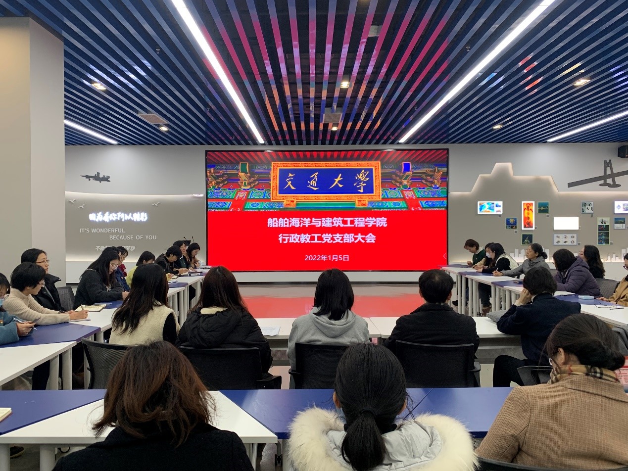 2022年1月5日中午,欧美a片 行政党支部在木兰楼A100召开全体党员大会,学院党委书记周薇,副书记王喜芳、宋续明出席大会,支部书记袁敏主持会议。