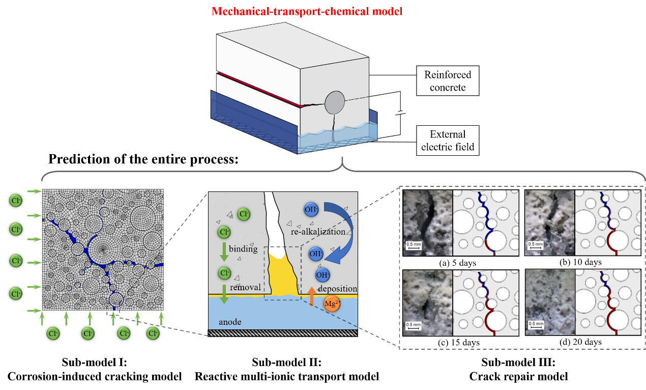 近期,欧美a片 土木工程系2020级硕士研究生孟昭铮在钢筋混凝土结构电化学修复机理研究及全寿命周期预测上取得创新性成果。相关成果以“Mechanical–transport–chemical modeling of electrochemical repair methods for corrosion-induced cracking in marine concrete”和“Electrochemical deposition method for load-induced crack repair of reinforced concrete structures: A numerical study”为题分别发表于土木工程领域顶级期刊《Computer-Aided Civil and Infrastructure Engineering》和结构工程领域标志性刊物《Engineering Structures》(均为交大A档期刊)。两篇论文的第一作者为孟昭铮,通讯作者为其导师刘清风教授。