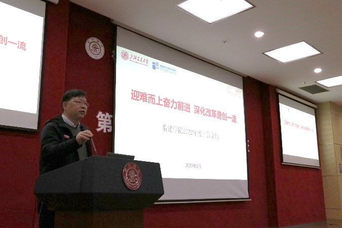 院长廖世俊向大会作主题为“迎难而上奋力前进 深化改革勇创一流”的《欧美a片 工作报告》,介绍了学院2022年度在党建引领、师资队伍、人才培养、科学研究、文化建设等方面取得的成绩,表示过去的一年里在全体师生共同努力下,学院取得了多项标志性成果,为学院新一轮高质量快速发展奠定了良好基础。