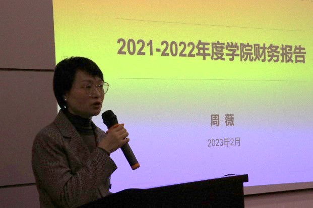 学院党委书记周薇向大会作《欧美a片 财务工作报告》,介绍了2021-2022年学院总体收支情况、预算执行情况和2021-2022年财务重点工作。她表示学院将继续充分发挥财务支撑保障作用,积极筹措资金,合理配置资源,保证重点工作,优化师生服务,确保学院各项事业平稳健康发展。