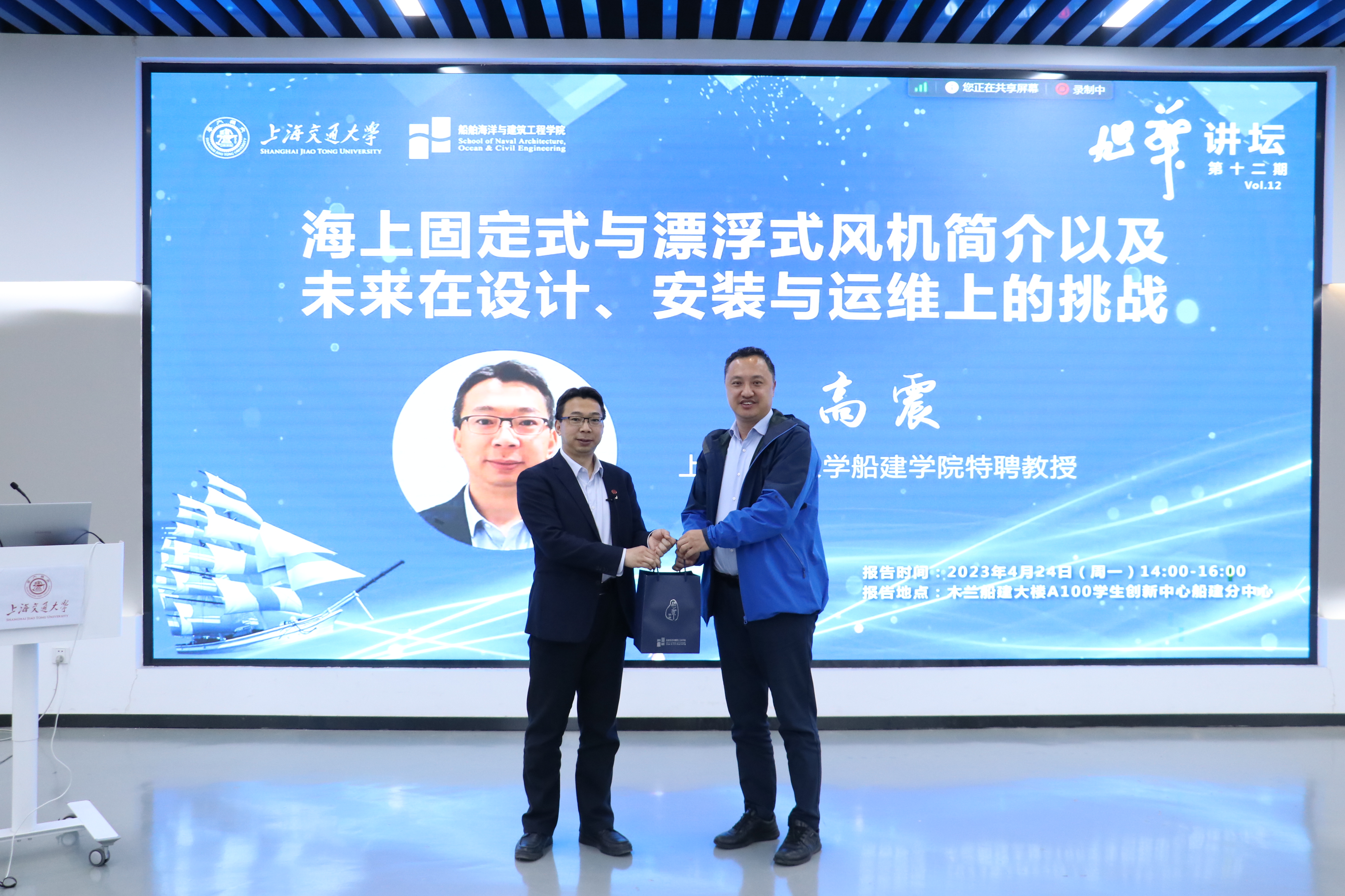2023年4月24日下午,欧美a片 举办了第十二期“旭华讲坛”,我院特聘教授高震带来了题为“海上固定式与漂浮式风机简介以及未来在设计、安装与运维上的挑战”的精彩报告。吸引了线下线上200多名校内外师生参加。本次报告由副院长付世晓主持。