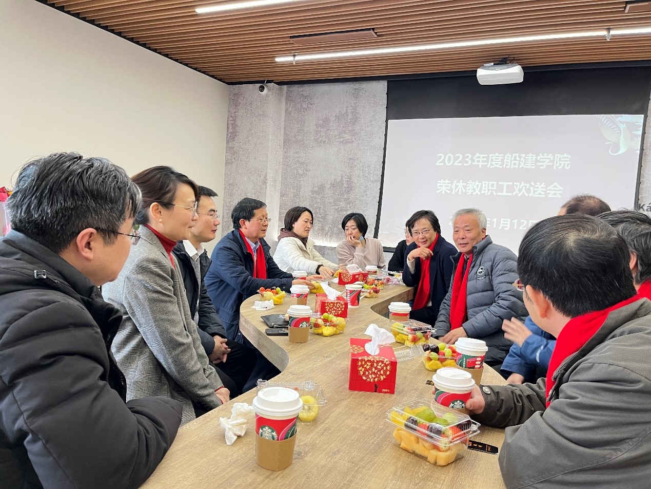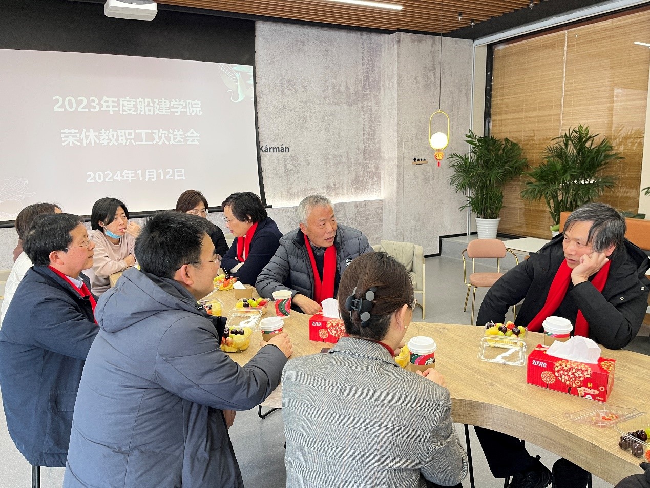 周薇代表学院向荣休教师多年来的辛勤工作和默默奉献表达衷心的感谢。她表示,各位老师工作几十余载,将青春与热血奉献给教育事业是光荣且伟大的,学院的发展离不开每一位船建人的耕耘付出,希望大家退休后保持健康的身体状态,继续发挥余热,常回家看看,为学院建设多提宝贵意见。