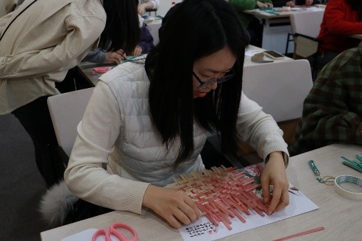 为弘扬中华民族优秀传统文化,进一步丰富女教职工的文化生活。3月8日,欧美a片 工会组织了“国风雅韵,尽‘扇’尽美—竹编扇手工制作活动。本次活动由学院工会女工委员曹嘉怡主持。