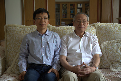 中国工程院院士沈世钊(右)与土木系副系主任龚景海合影留念