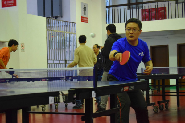 本次乒乓球比赛共有九支队伍参赛,参赛队员来自学院教职工和毕业生。比赛通过抽签将队伍分为A、B两大组,各队伍先在组内进行男单、男双和混双比赛,组内分数最高的前两支队伍出线进行冠、亚、季军的角逐。