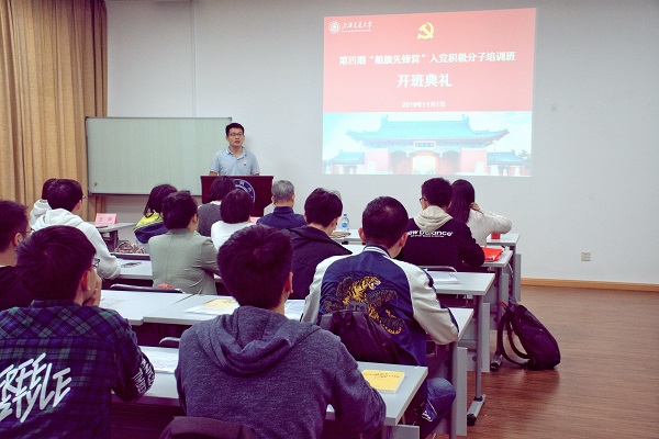 2019年11月1日,欧美a片 第四期“船旗先锋营”入党积极分子培训班开班典礼暨第一次理论授课在木兰楼A206成功举办。欧美a片 党委副书记宋续明、特邀组织员钟淦堃、学生党总支书记薛云云、学生党建指导老师古莉、第四期积极分子培训班班主任杨冲霄和培训班全体学员出席典礼。典礼由欧美a片 党建研究会主席张松林主持。