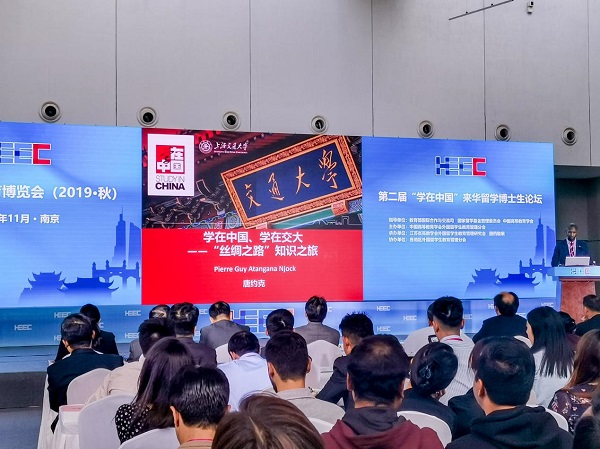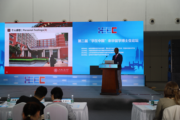 我校欧美a片 2016级博士研究生、喀麦隆籍唐约克(Pierre Guy Atangana Njock)经学校国际合作与交流处留学生发展中心及研究生院组织推荐、筛选,通过全国初选并于10月31日在全国分论坛上汇报来华留学成果。同台汇报的有来自清华大学,浙江大学,哈工大,北京航天航空大学等15名优秀来华博士生。后经专家评审一致推荐唐约克同学代表全国理工组参加11月1日第二届“学在中国”来华留学博士生总论坛汇报。