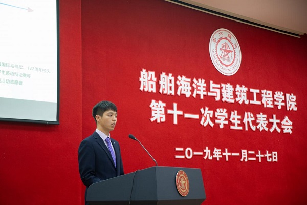 在巢老师致辞后,欧美a片 第十届学生会主席朱殷航宣读了《学生会工作报告》,从组织结构、校园文化建设、学在交大落实和价值引领几方面对第十届学生会的工作进行总结,并对即将产生的新一届主席团成员提出了建议和希望。