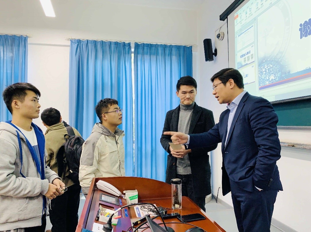 庄重从船舶入级起源、船舶检验相关名词解释入手,详细阐述了船级社的基本属性及业务模式,随后全面介绍了CCS成立63年来逐步成长为国际海事舞台上一支重要力量,实现百余个检验服务网点跨越四个大洲的历史沿革和辉煌历程。在授课过程中,庄重还就船舶大数据、船舶新能源、智能船舶等目前热点情况和未来发展趋势进行了简要解读。
