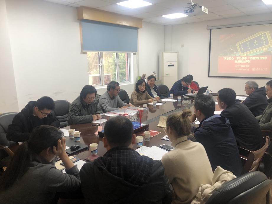 会议中,支部书记汇报了支部2019年的工作,并针对前阶段支部开展的“不忘初心、牢记使命”主题教育活动情况进行了总结。随后,支部党员按照学院主题教育的部署和要求,重点从三个方面检视自身问题。易宏教授、葛彤教授两位团队带头人分别就什么是高校教师的初心,什么是科研和发展的目标,怎样在科研、教学等方面更好的发挥党员的作用做了深刻的发言。支部每名党员分别就自己的学习心得、对党章党规党纪的认识和遵守情况、发挥党员先锋模范作用等方面检视问题找差距,进行了深入的自我剖析和交流。经过对照检视,大家都深受启发,纷纷表示要加强学习,不断提高自己思想和业务工作水平;要严于律己,发挥好党员的先锋模范带头作用,为团队和学科发展贡献力量。随后,会议进行了投票,对党员和支部工作进行民主评议。