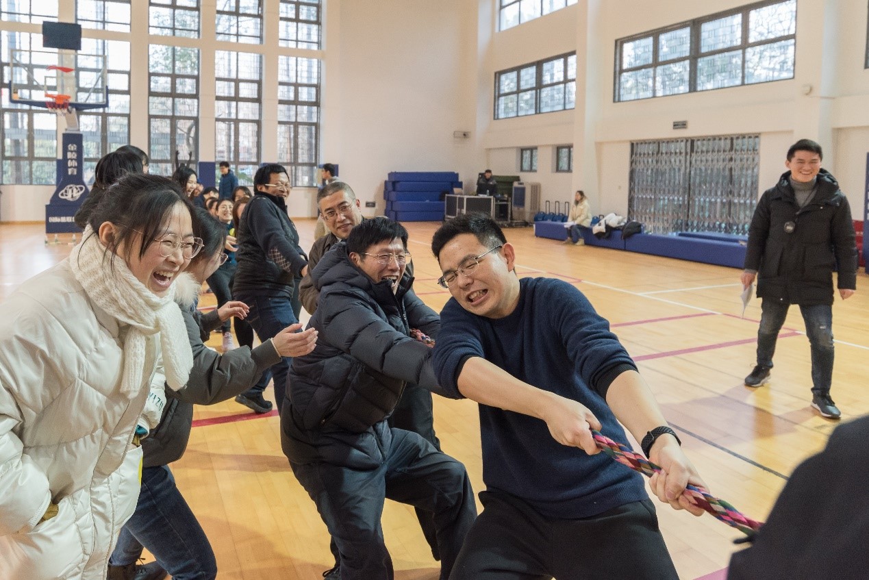 为喜迎新春,同时丰富学院教工的文体生活,欧美a片 于2020年1月13日下午在闵行校区南体一楼篮球馆举办“船承卓越.建构未来”教职工迎春趣味运动会。本次运动会由院工会副主席袁敏主持。