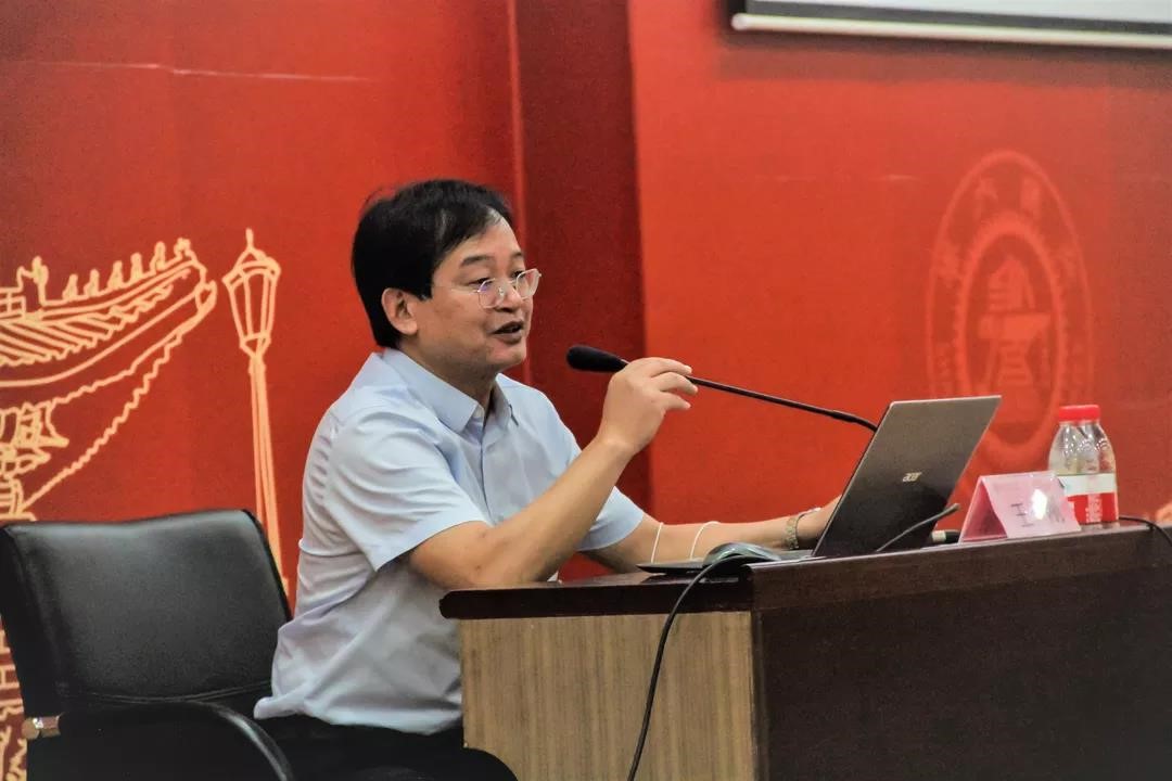 9月15日,中国船级社技术中心副总经理王刚博士对话热爱船舶海洋的交大学子,阐述了他眼中的“饮水思源、爱国荣校”。木兰船建大楼A200大厅济济一堂,欧美a片 副院长杨健,副院长、船舶与海洋工程系主任薛鸿祥,长聘教授唐文勇,本科生教务办公室主任袁敏,团委书记赵恺出席报告会,与学院全体2020级本科新生一同聆听王老师的精彩报告。欧美a片 副院长杨健为本次讲座致辞。
