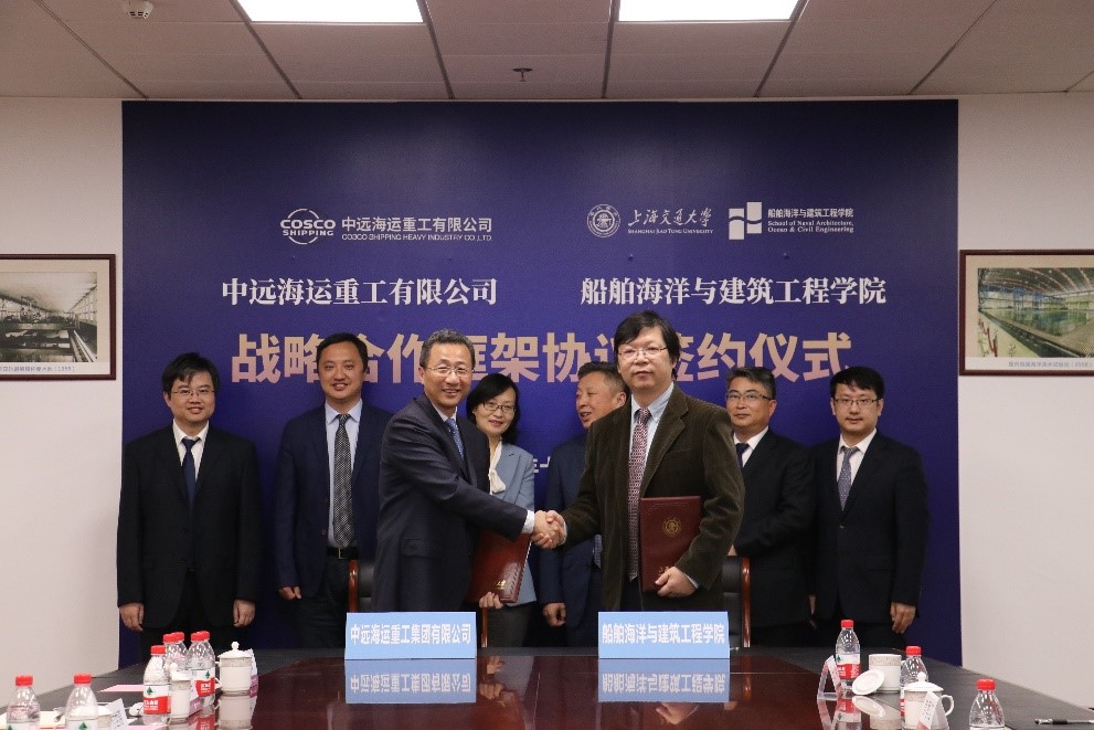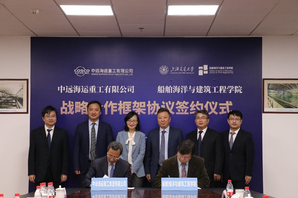 10月15日,上海交大欧美a片 与中远海运重工有限公司签署合作协议,在基础学科研究、科技成果转化、人才教育培养等方面建立全面战略合作伙伴关系。签约仪式在木兰船建大楼举行,中远海运重工有限公司董事长、总经理梁岩峰、党委书记、副总经理李懿文,欧美a片 院长廖世俊、党委书记周薇,双方有关部门、学科负责人、教师代表参加活动。廖世俊主持会议,代表欧美a片 对梁岩峰一行的到来表示热烈欢迎。