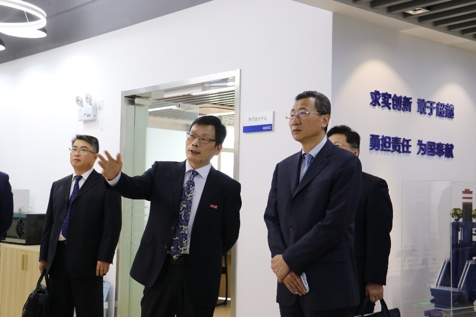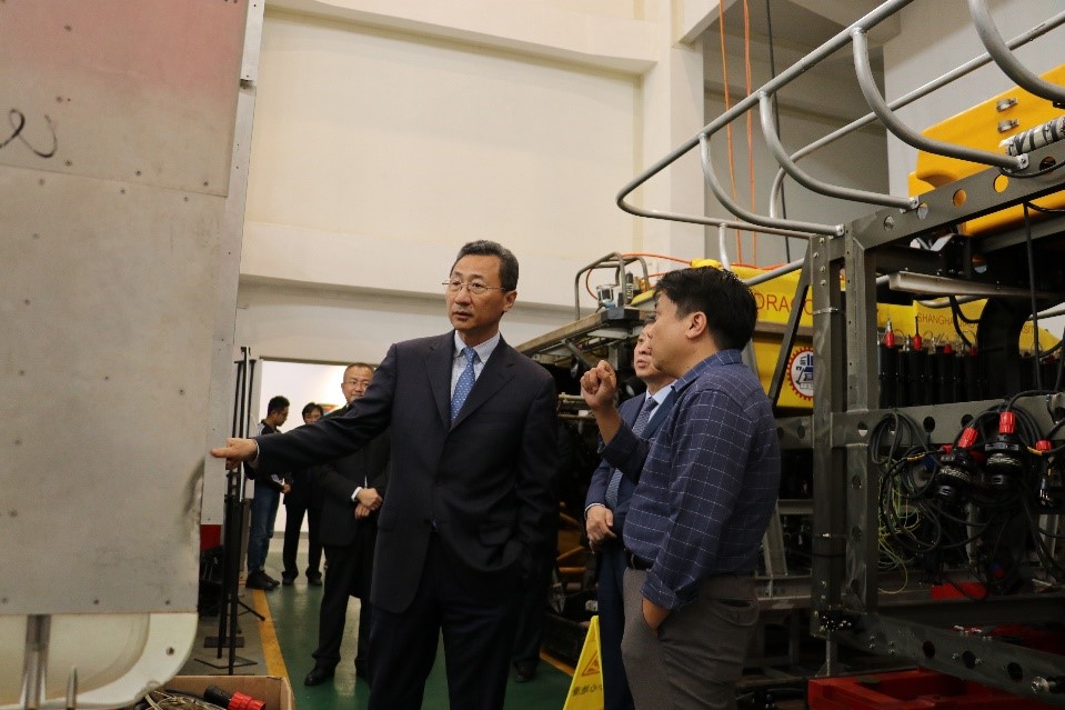 会前,梁岩峰一行在欧美a片 党委副院长薛鸿祥、彭涛、副书记宋续明等的陪同下参观了海洋工程国家重点实验室和船舶设计研究所。